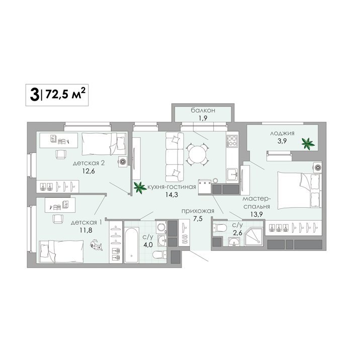 Квартиры с анфиладной или матер-спальней – зоной особого личного пространства — для тех, кто любит близких, ценит время, проведённое вместе, но не забывает о собственном комфорте.