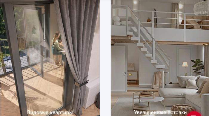 Видовые квартиры с увеличенными окнами или угловым остеклением — для тонких романтиков, которым нравится за чашкой чая вместе вглядываться в бегущие облака.