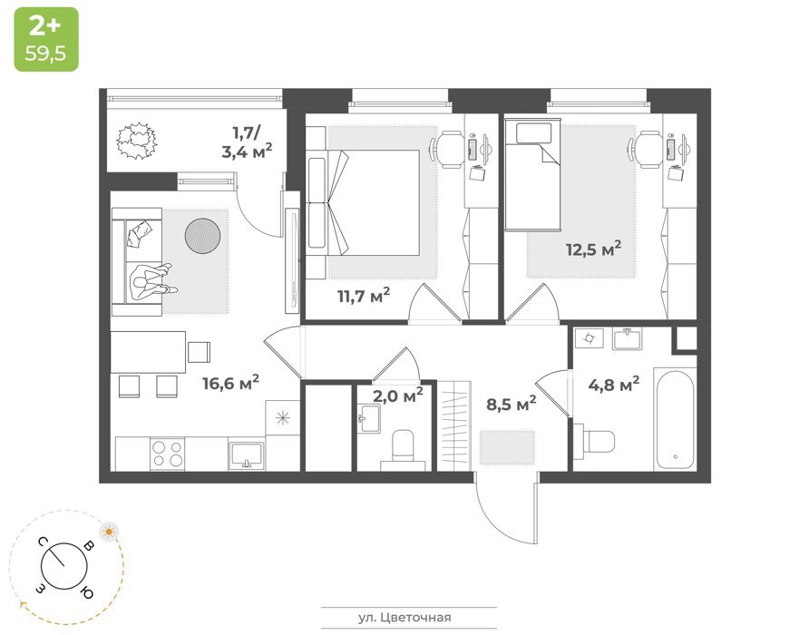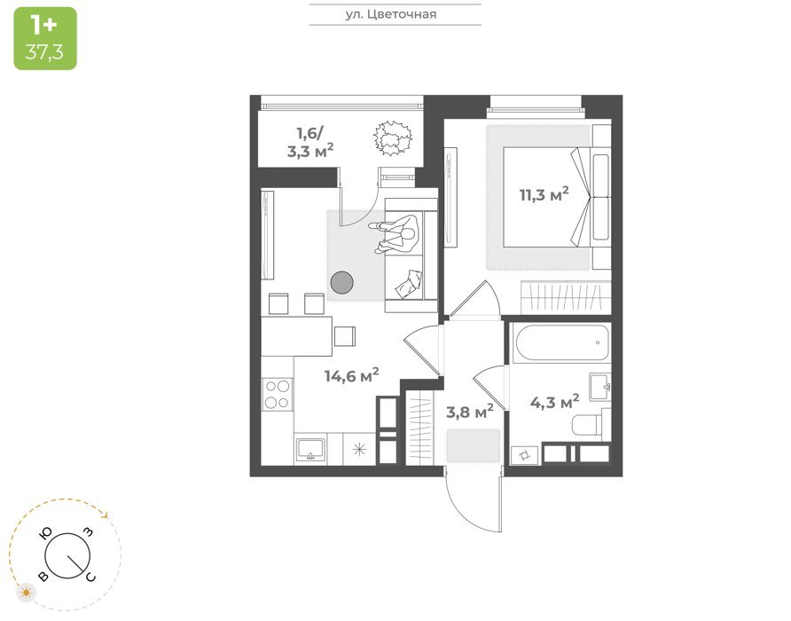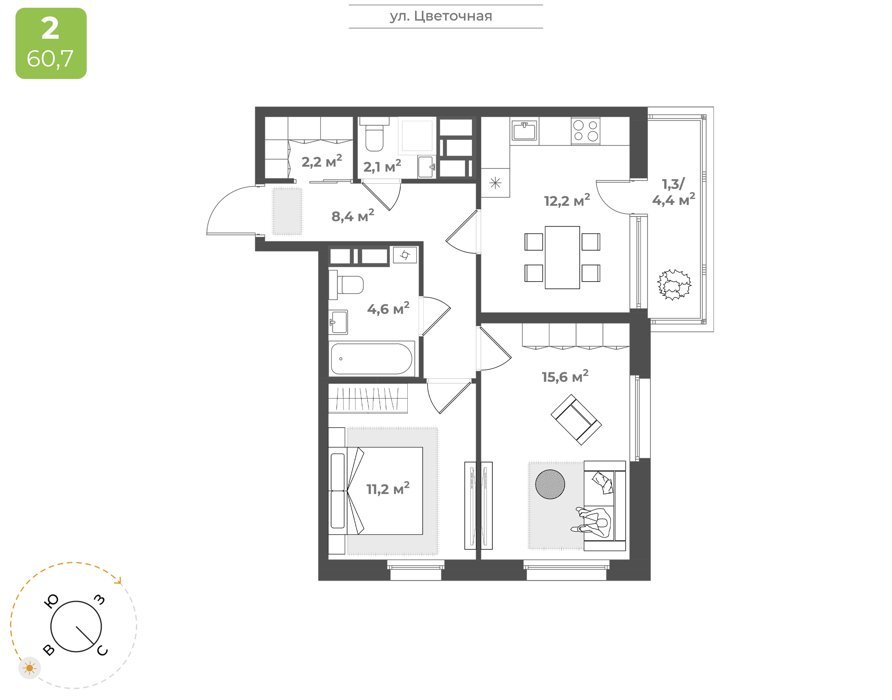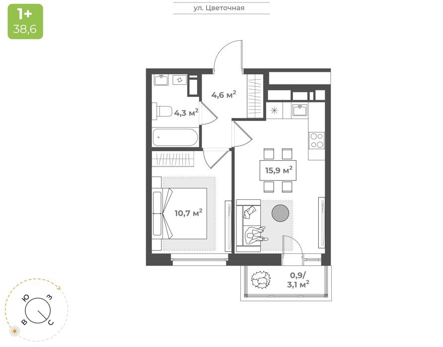 В «Новой Твери» спроектировано более 30 видов планировочных решений от компактных студий до просторных семейных 3-комнатных квартир с мастер–спальней.