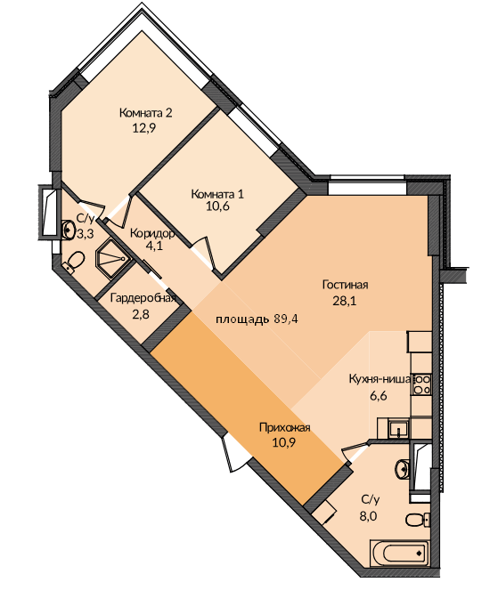 Стильная входная группа, просторные этажные холлы не оставят равнодушными любителей свободных, наполненных воздухом пространств.