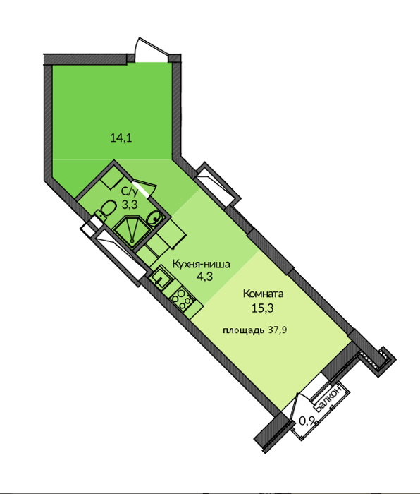 Отсутствие стен и перегородок даёт возможность гибко расположить мебель и зонировать пространство по своему вкусу. Больше места — больше простора для жизни!