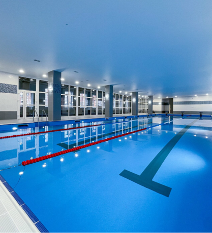 Вас ждут три дорожки по 25 метров, с перепадом глубин от 1,2 м до 1,8 м и системой очистки по нормам СанПиН 2.1.2.1188−03.